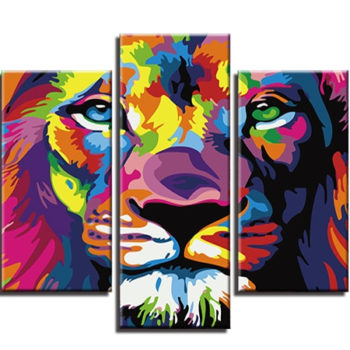 Frameless 5 Panels Colorful Lion DIY Painting