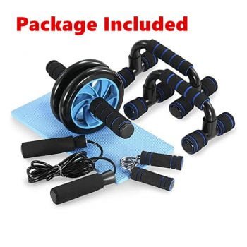 Home Gym Exercise Set – Abdominal Roller Wheel 8 Way Resistance Band Jump Rope